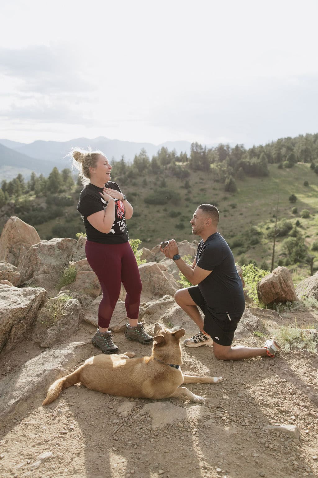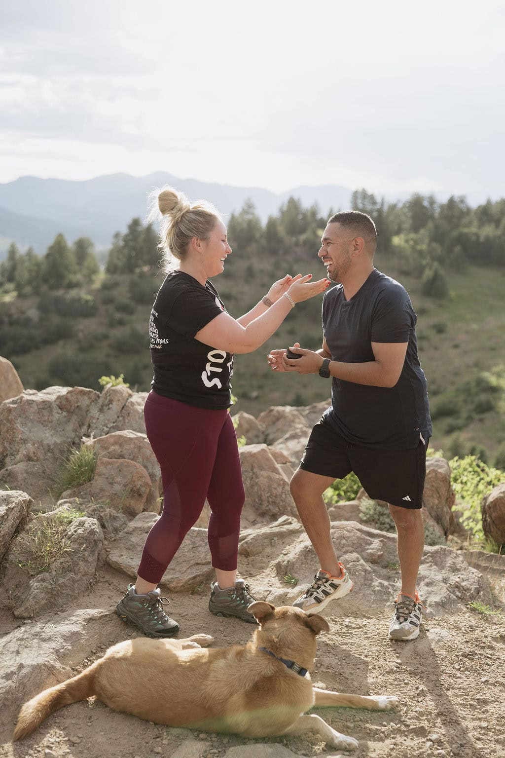 There’s a rocky overlook slightly off the main trail that is my favorite place to shoot. It feels tucked away and intimate, with panoramic views that stretch for miles. That’s exactly where Alberto chose to propose to Jenny. The setting couldn’t have been more perfect.