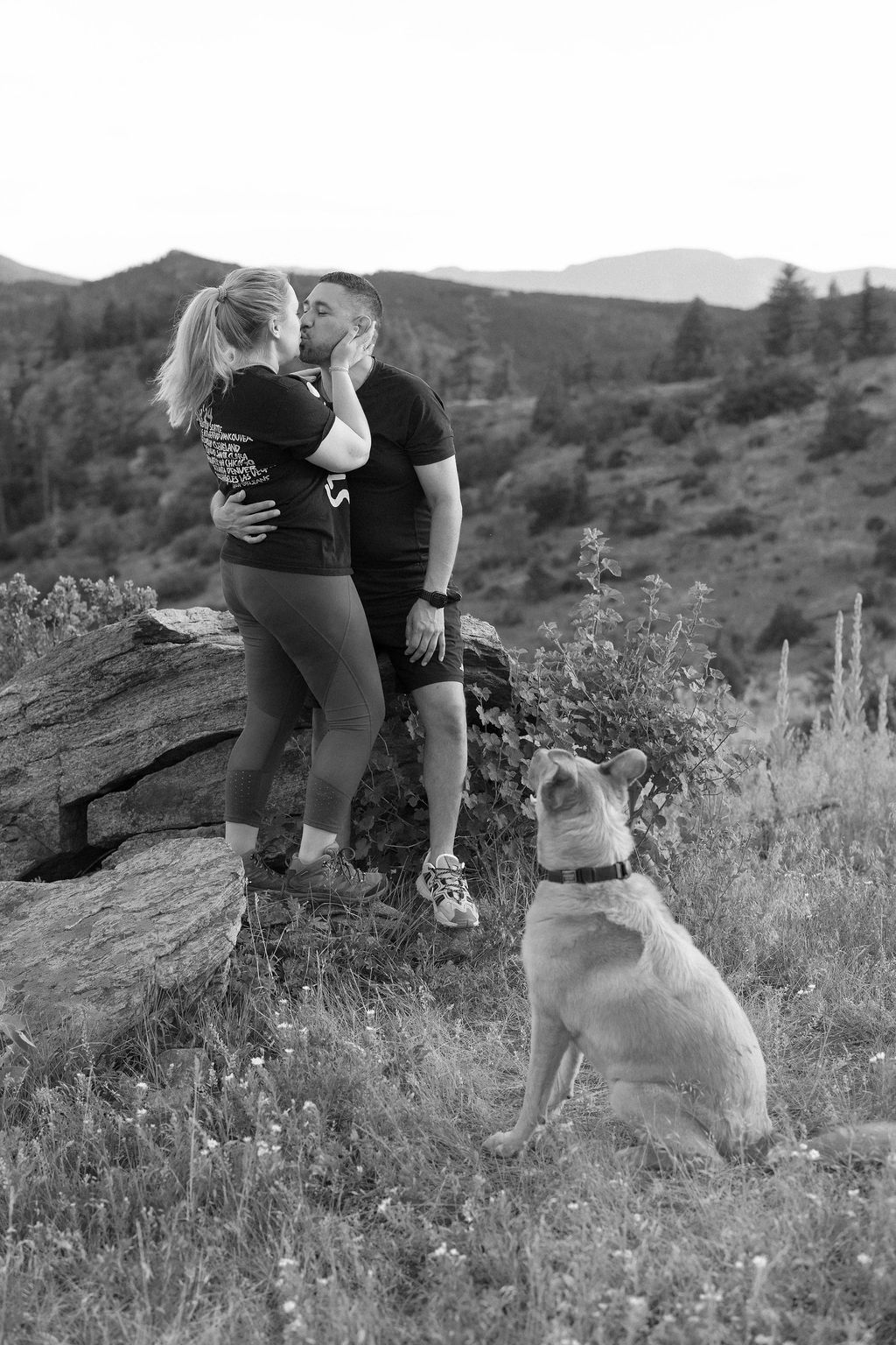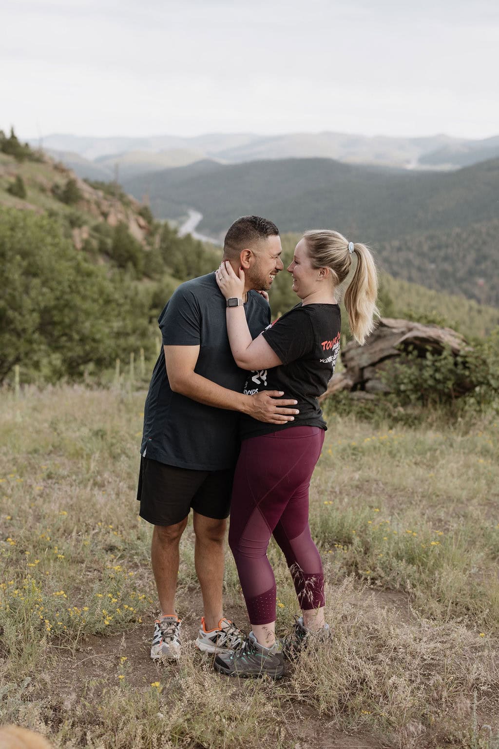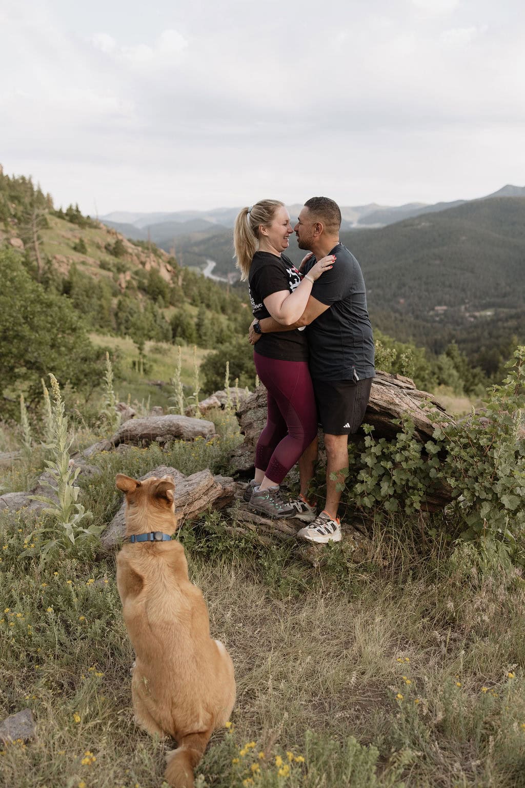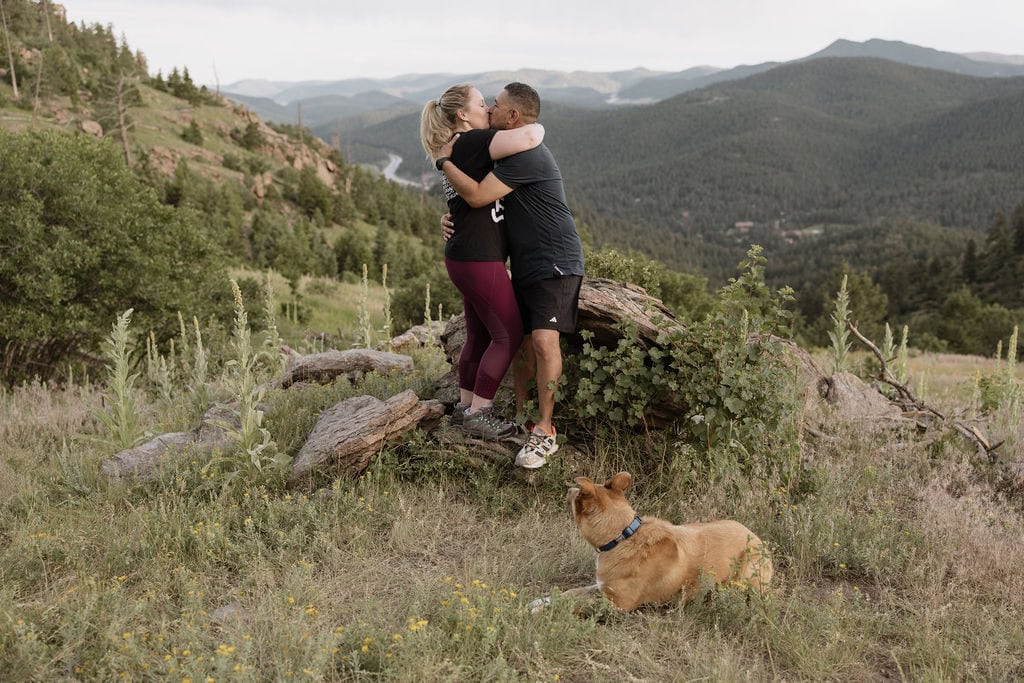 What makes this Mount Falcon engagement even more special is how close we came to rescheduling. Storms were in the forecast all day, and the radar showed rain nearly everywhere around us. But as we got closer to session time, the weather began clearing—almost exclusively over Mount Falcon West. I am so glad we trusted our instincts and kept our date because the evening turned out absolutely beautiful.