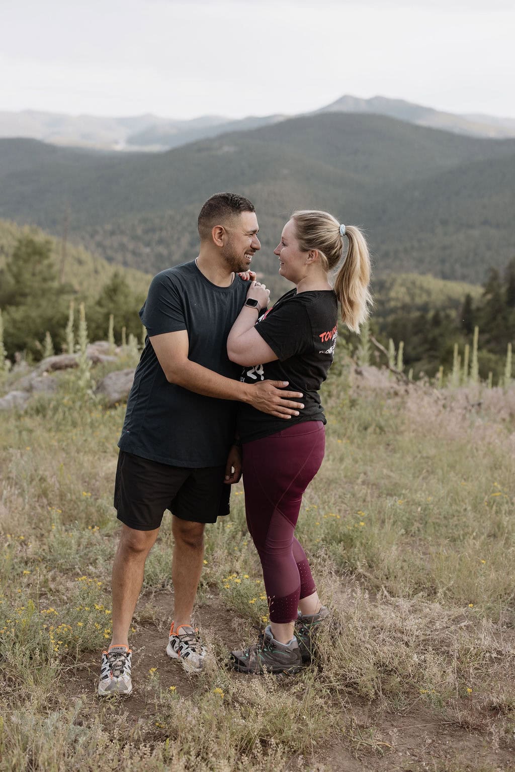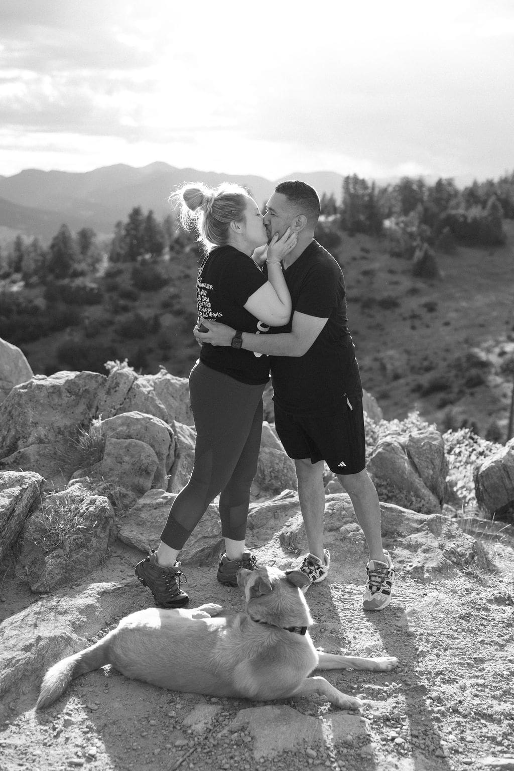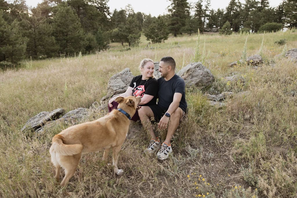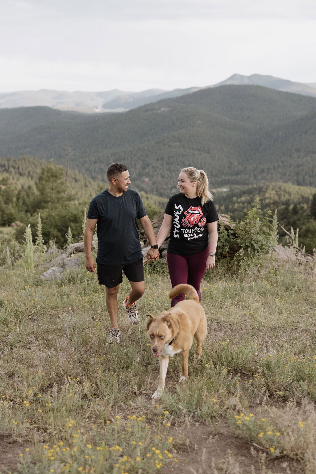 What makes this Mount Falcon engagement even more special is how close we came to rescheduling. Storms were in the forecast all day, and the radar showed rain nearly everywhere around us. But as we got closer to session time, the weather began clearing—almost exclusively over Mount Falcon West. I am so glad we trusted our instincts and kept our date because the evening turned out absolutely beautiful.
