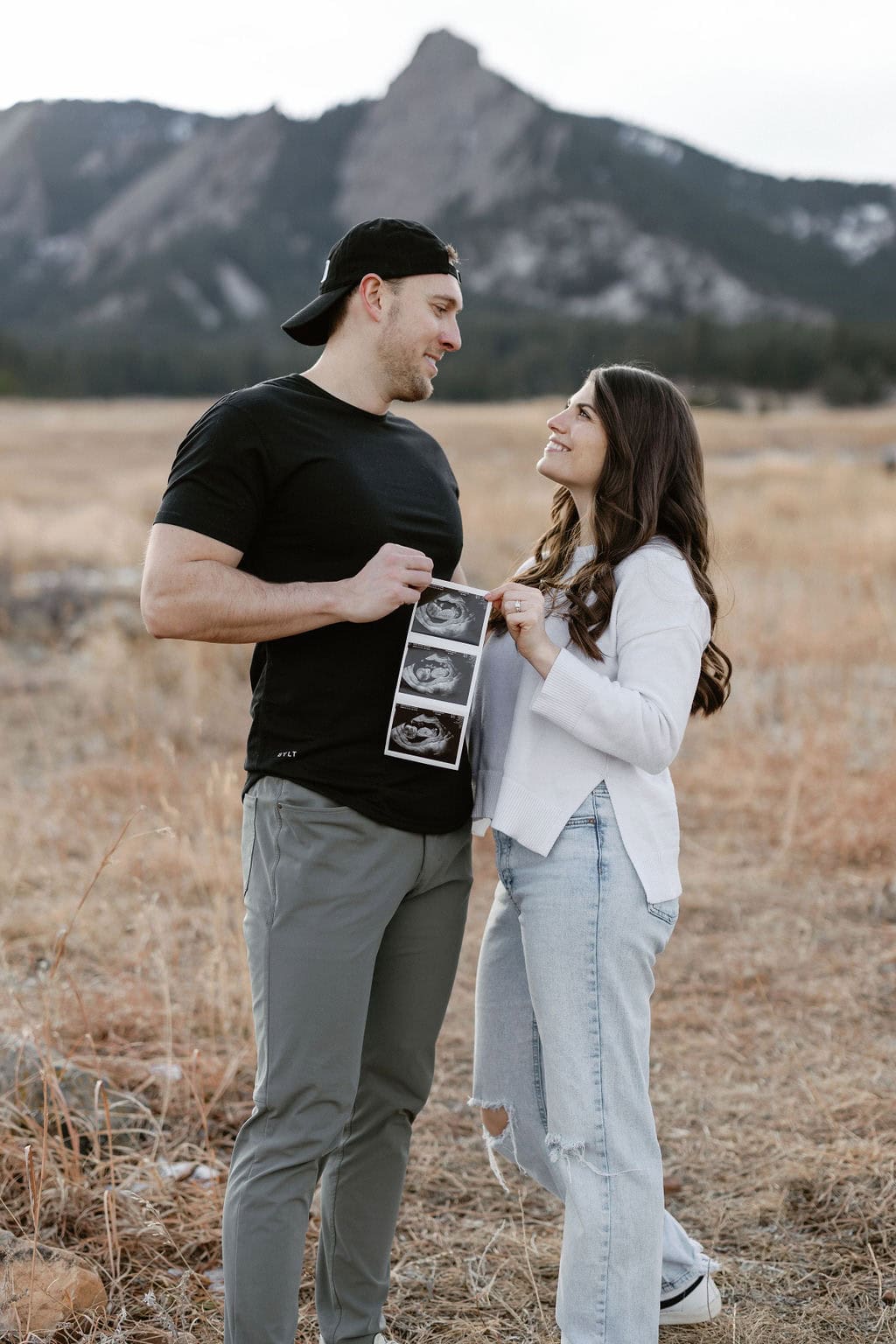 This session was especially meaningful to me because this sweet couple isn’t new to my camera. I photographed their engagement photos in boulder back in 2020, and their wedding in 2021, and getting to document this next chapter for them felt incredibly full-circle. Especially since we chose a location so close to where their engagement photos were taken.