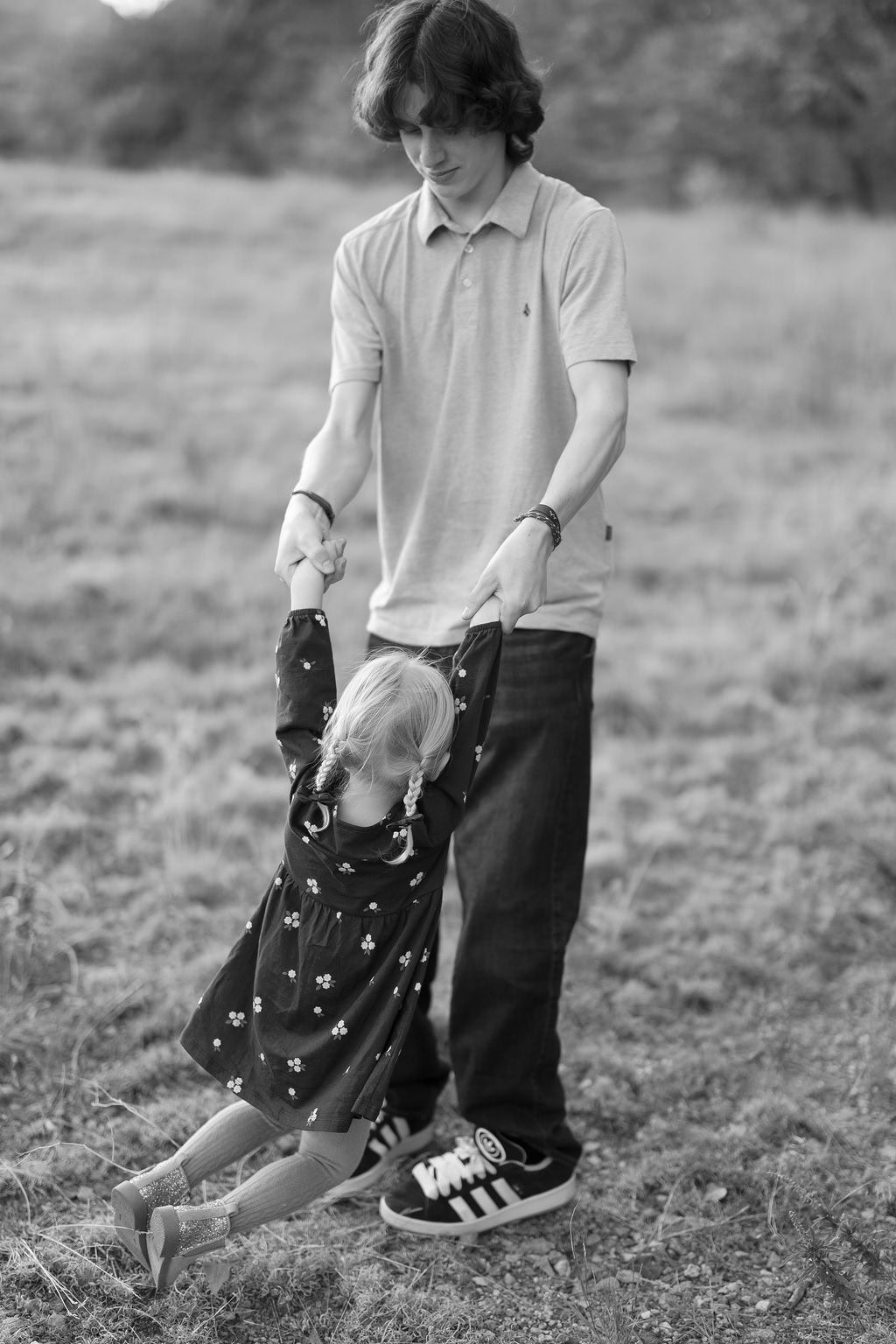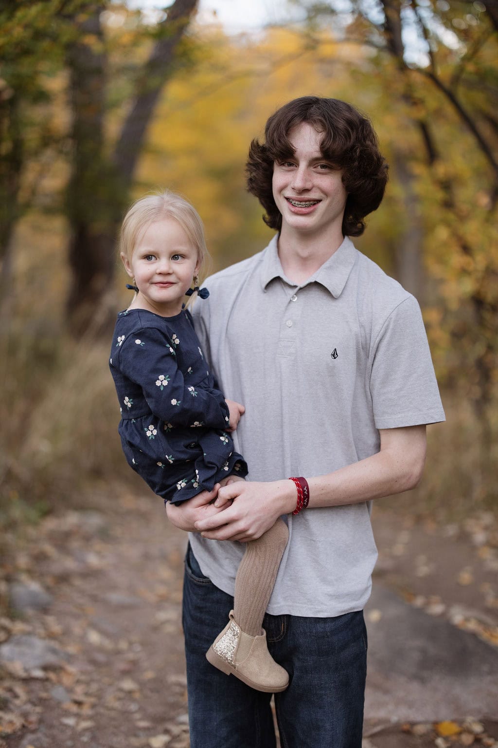 We explored a quiet area of the park near the creek, where the trees were glowing in every shade of yellow and orange. The kids tossed leaves, ran along the trail, and we paused every so often for a few posed portraits before letting the moment unfold naturally. My shooting style is a mix of posed and candid, with an emphasis on keeping things relaxed and authentic. I love tones that feel timeless and true to life, with just a touch of nostalgia — the kind that takes you right back to that season years from now.