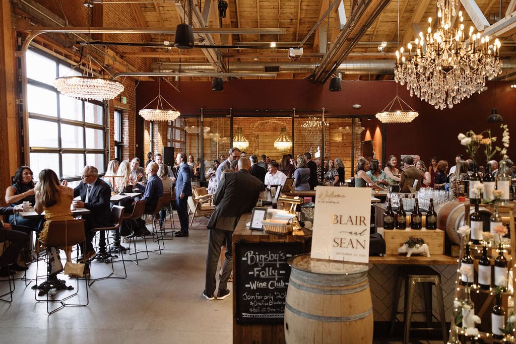 A Bigsby’s Folly Wedding in Denver offers such a unique atmosphere. The exposed brick walls, timber ceilings, and dramatic chandeliers create a warm, romantic setting that photographs beautifully. Add in their artisanal wines, customizable menus (including accommodations for dietary needs), and even wine-blending experiences, and it’s easy to see why couples love getting married here.