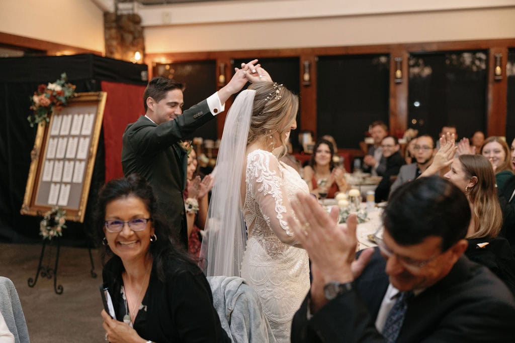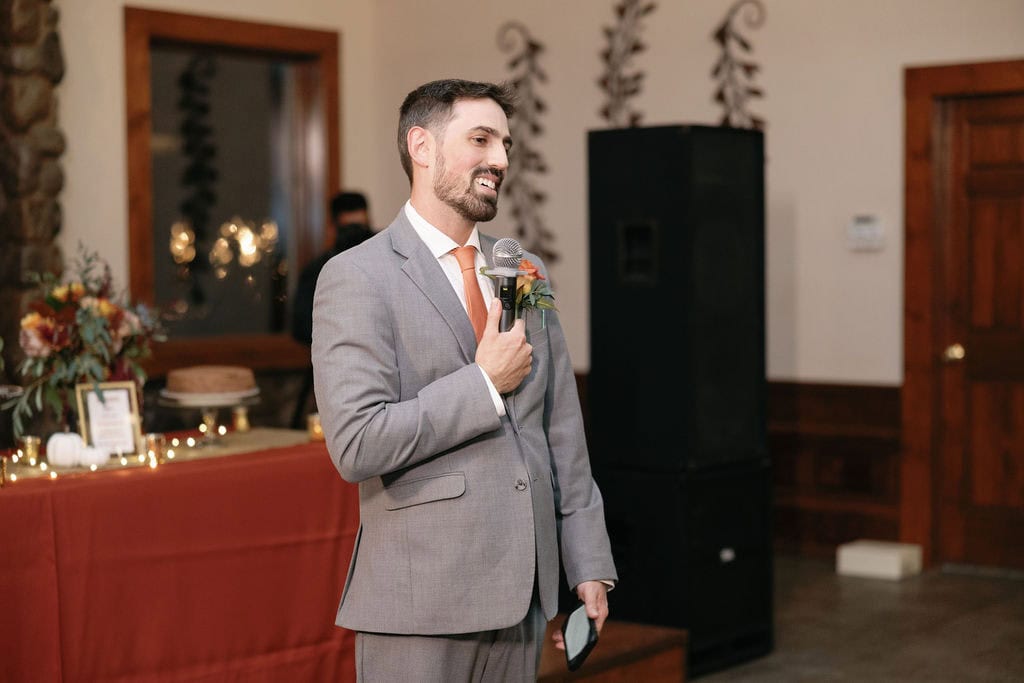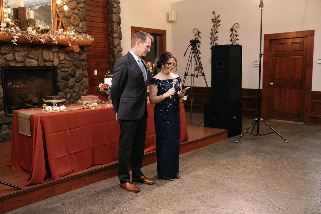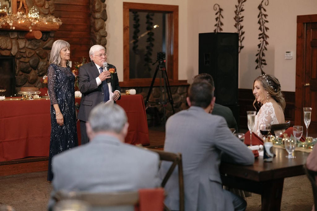 Toasts during wedding reception at Shupe Homestead near Boulder Colorado