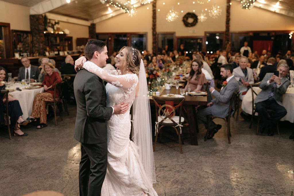 Romantic and emotional first dance between bride and groom at their boulder colorado wedding at Shupe Homestead Wedding Venue