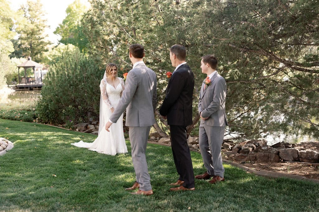 From the very beginning, it was clear how much thought and heart Alex and Lauren poured into every detail of their day. One of my favorite moments was their first look—it was sweet, emotional, and so perfectly them. They read private vows to each other and took their time having a moment together before the day got crazy. But Lauren didn’t stop there. She also shared a first look with her dad and brothers. When I noticed her dad’s tie, my heart melted. He had a photo of the two of them from when she was a little girl printed on it. Such a meaningful detail that spoke volumes about their bond.
