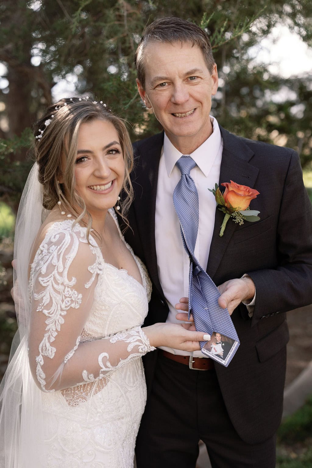 Brides dad has a photo on the back of his tie of him and his daughter when she was a baby