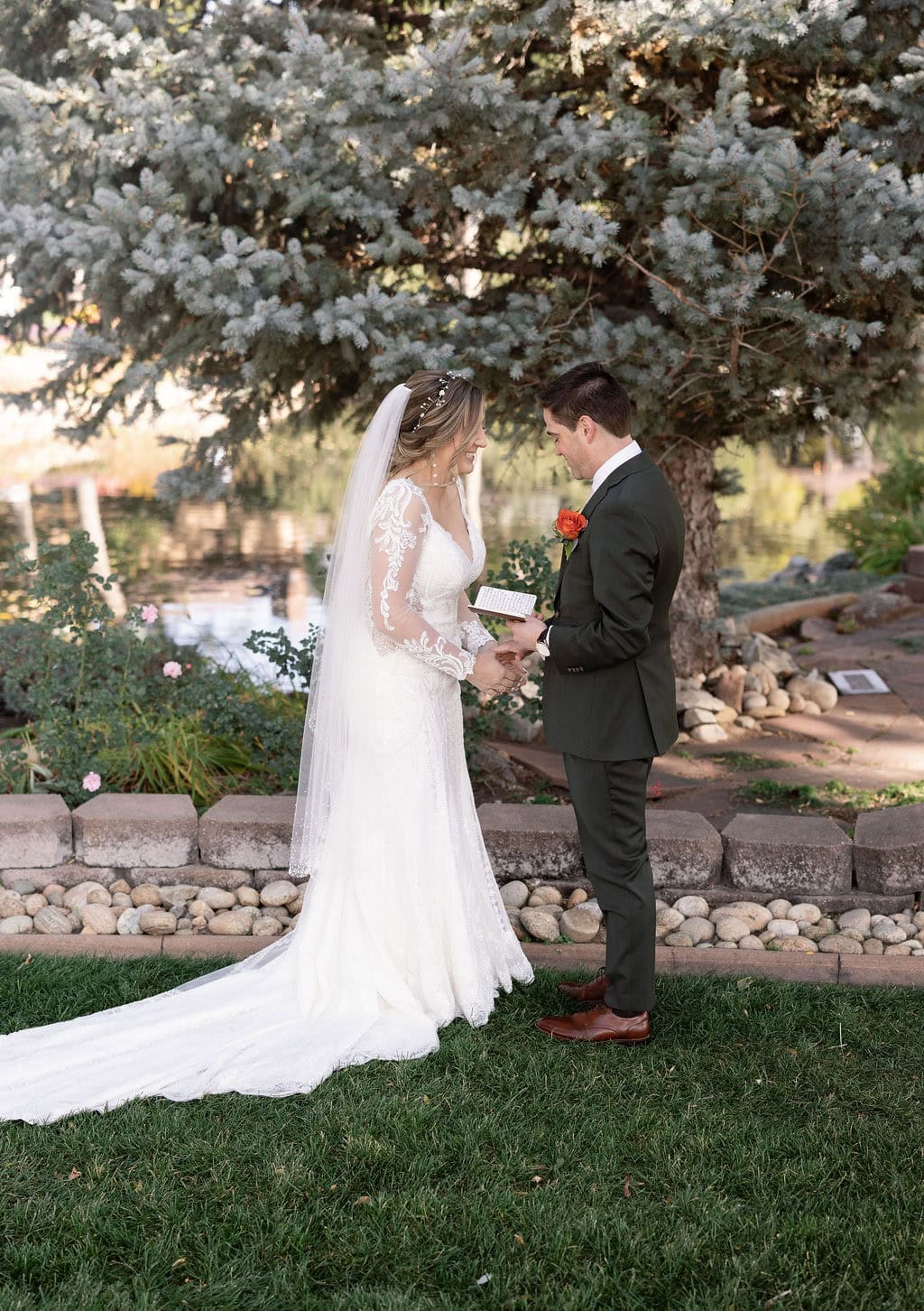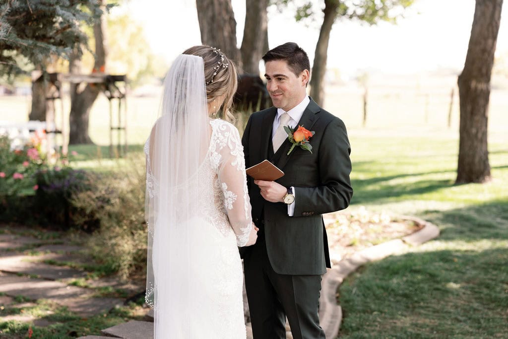 Bride cries as she reads private vows at her first look at shupe homestead
