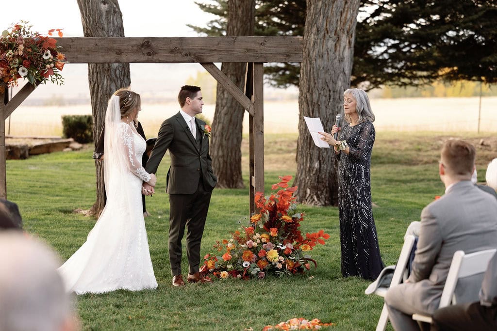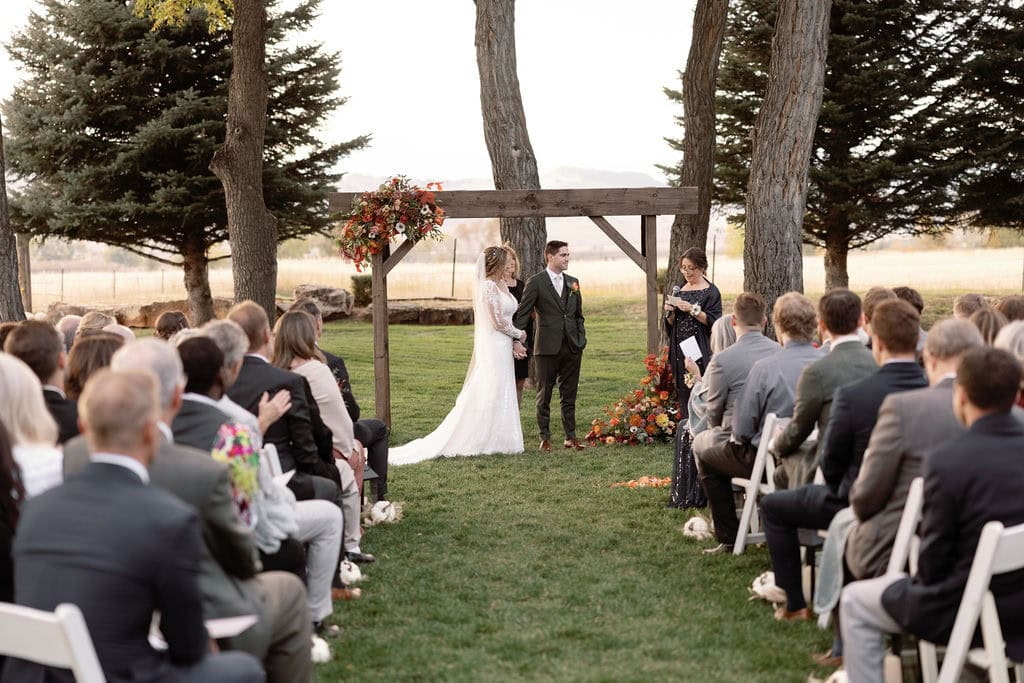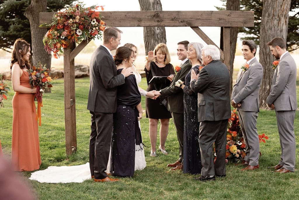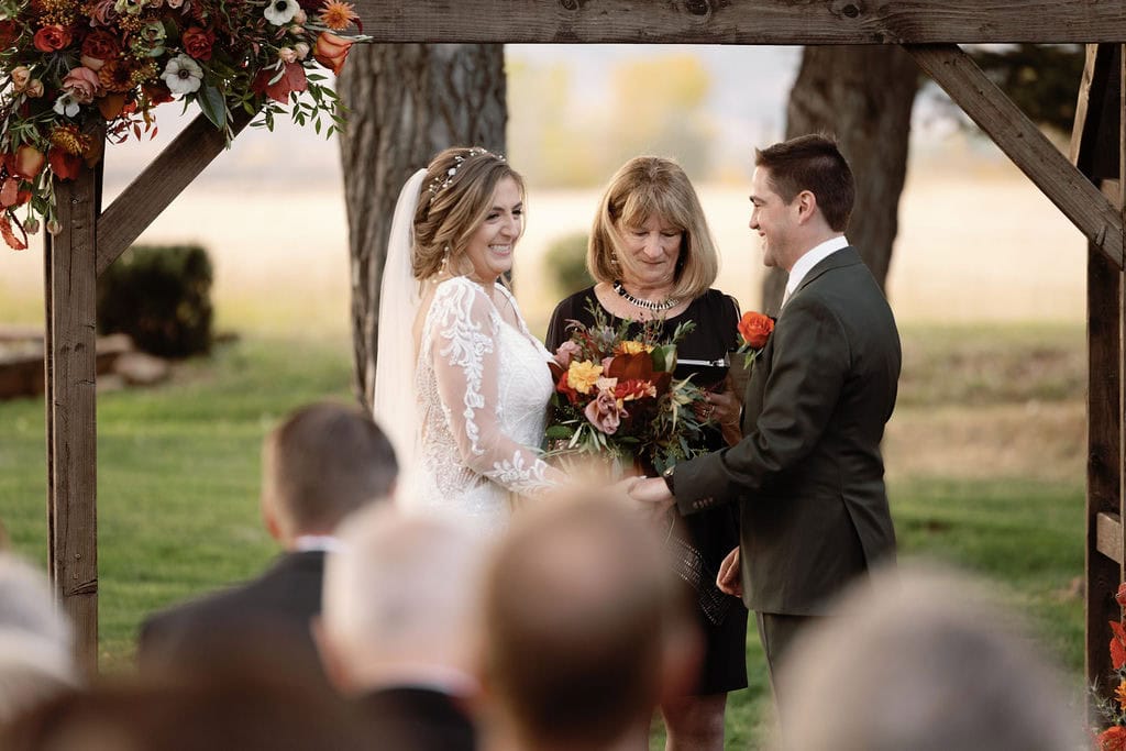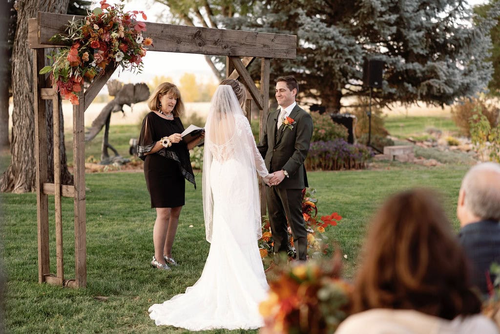 Beautiful fall wedding ceremony at shupe homestead boulder wedding venue