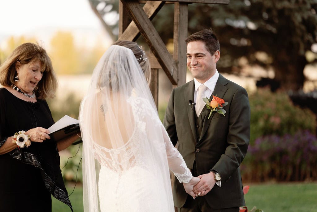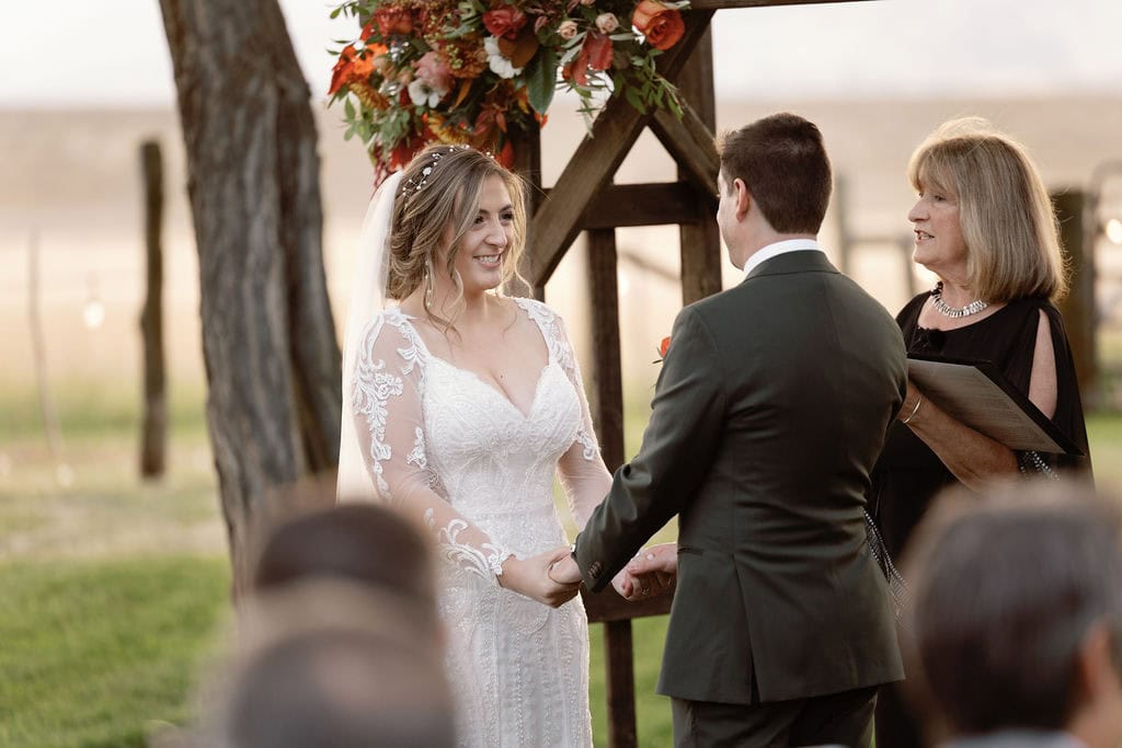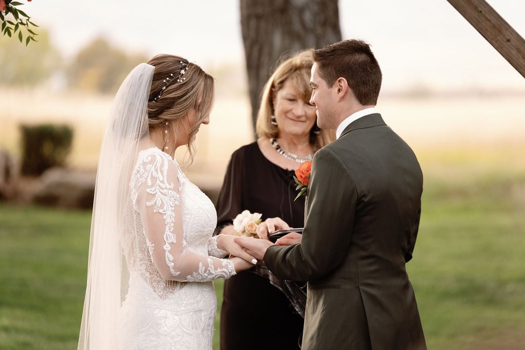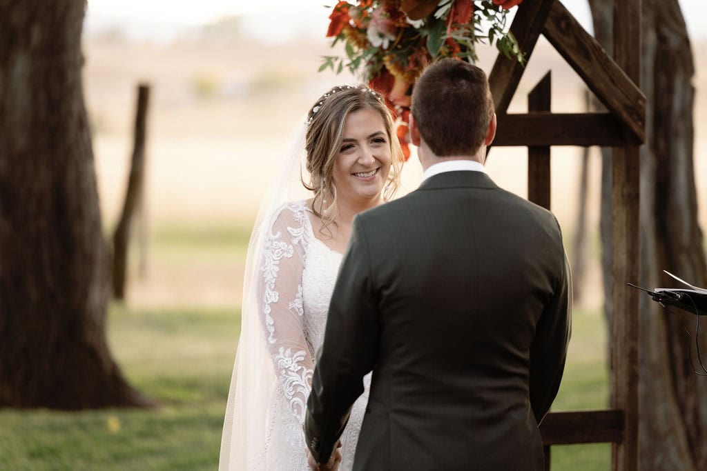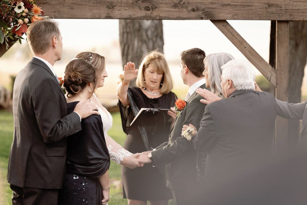 Beautiful fall wedding ceremony at shupe homestead boulder wedding venue
